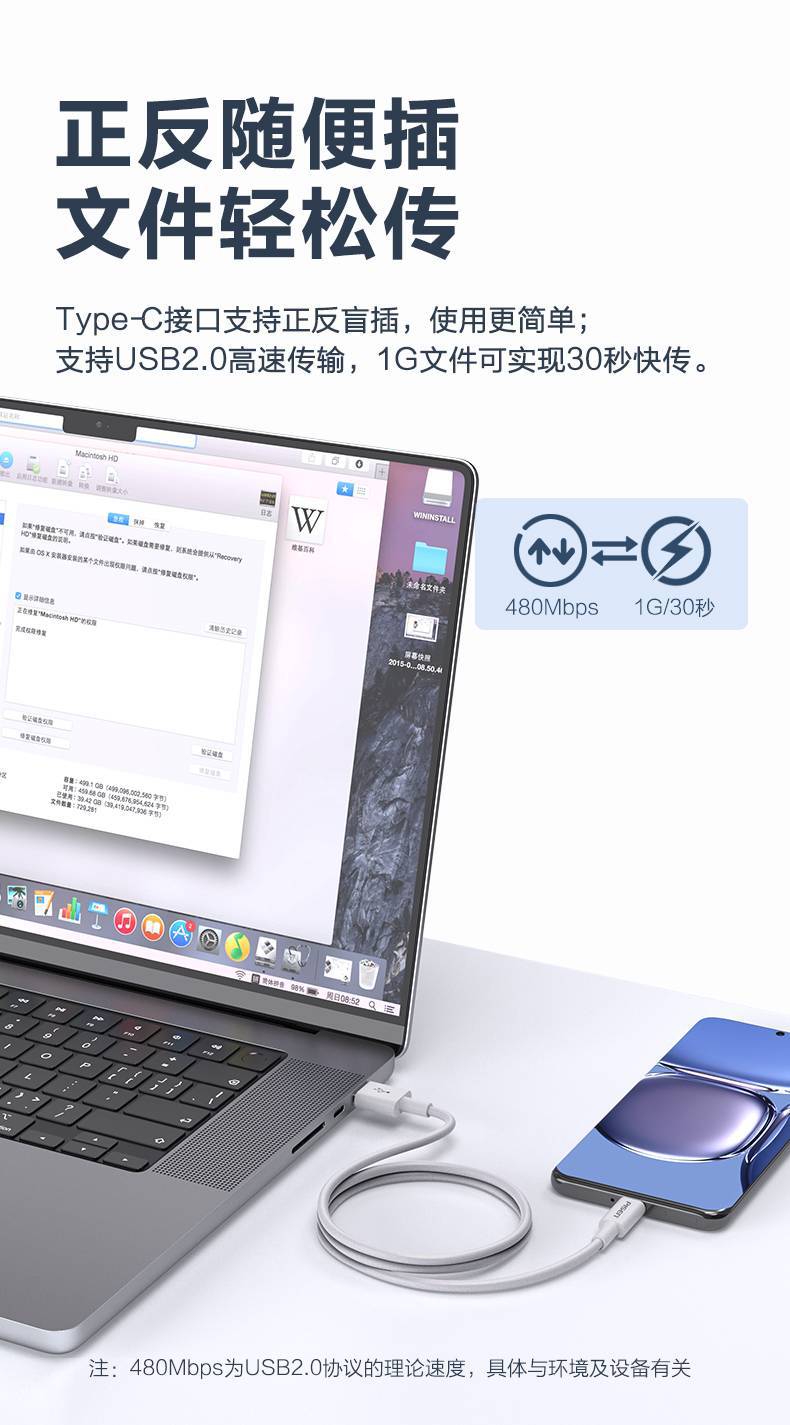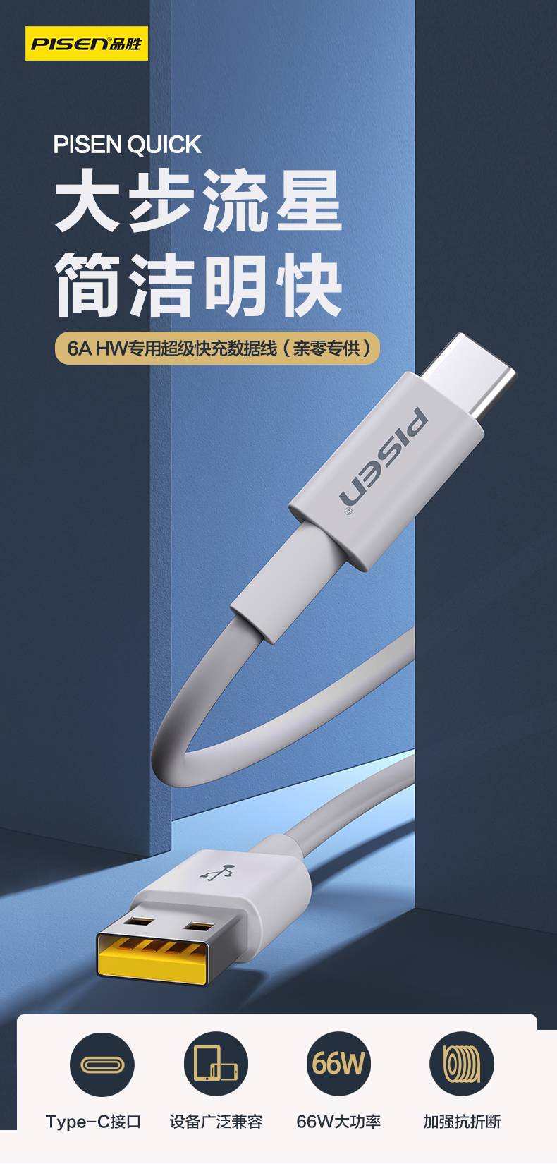 品胜数据线Type-C适用华为荣耀OPPO手机超级快充66W闪充6A